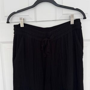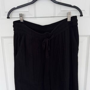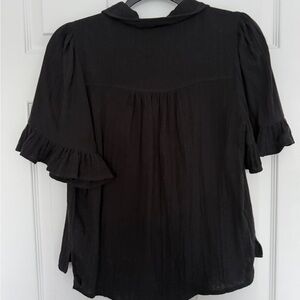 Sophisticated black blouse with ruffled sleeves and loose fitting pants. Perfect for versatile styling.