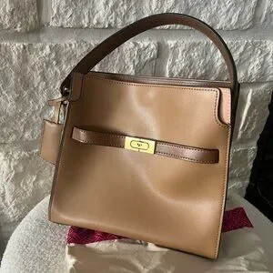 EUC Tory Burch Tan and Brown Lee Radziwill Small Double Bag Tiramisu Color