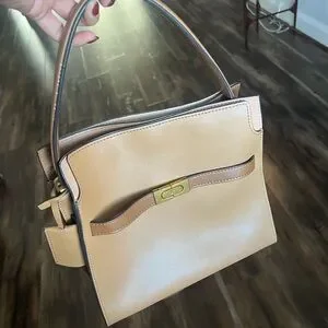 Elegant tote with tan body. Brown accents and gold hardware. Perfect for everyday use.