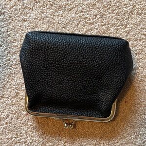Dooney & Bourke Pebble Grain leather framed coin purse in black in brand new condition. Super cute and small perfect for a little clutch or inside purse. Beautiful black, leather and gold hardware.