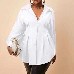 White Casual Women's Plus Size Long Sleeve Blouse Shirt