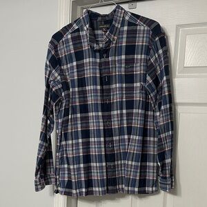 Eddie Bauer Navy and Red Plaid Casual Button Down Shirt
