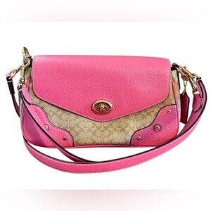 HP π₯βοΈNew Coach Vibrant Pink and Tan Millie Leather Crossbody Shoulder Bag SOLD!