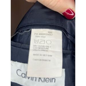 Keywords: Calvin Klein blazer, men's gray blazer, wool blazer, formal blazer, classic fit blazer, single-breasted blazer, two-button blazer, notch lapel blazer, solid pattern blazer, 42R