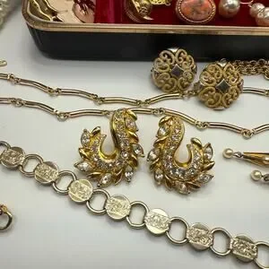 Includes post and clip back earrings, necklaces, bracelets, brooches, and a hat pin.