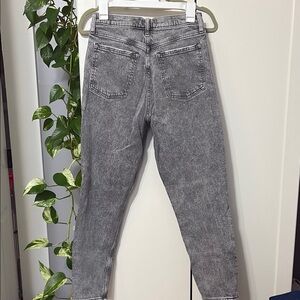 The mom high rise . Chic gray jeans with a straight leg design. Ideal for any occasion. Comfortable and stylish. Smoke free home.
