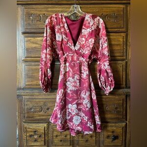 Aakaa V-Neck Deep Maroon Floral Mini-Dress
