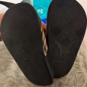 Elegant slides with Burberry's signature check design. Perfect for casual wear. Please review pictures for details
