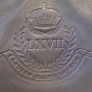 Elegant brown tote with embossed logo. Durable leather material. Perfect for everyday use.