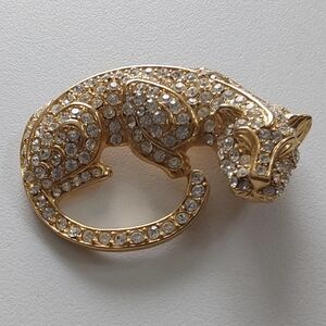 Vintage Trifari Leopard Brooch Gold Tone Rhinestones