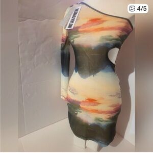 New ONLY Multicolor One Shoulder soft Dress with side hole size small