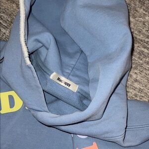 Great hoodie- gently worn. Very small bleach market on pocket in front ( hardly noticeable). Size S- details in last few pics. Price reflects flaw, retails for $175 online- fair offers please. Thanks!