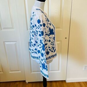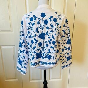 Zara Embroidered Cotton Overshirt Light Jacket White and Blue Size Large