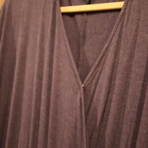 XL, Navy blue long-sleeve jumpsuit romper with a V-neck and elastic waistband. This jumpsuit is so soft and comfy. There is a snap at the chest to keep it closed and it has a belted waist. There are no snags, holes or stains on this. Bundles and offers welcome. Pet free smoke free home.