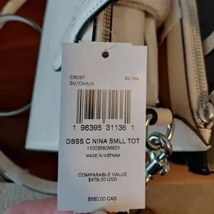 NWT Elegant Coach handbag in a sophisticated cream color. Perfect for any occasion.