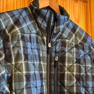 Stay stylish and warm with this blue and hunter green plaid jacket. Perfect for any casual outing. In like new condition.