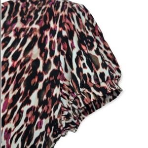 Worthington Stretch Pink & Brown Multi Color Mini Leopard Print Short Sleeve Top