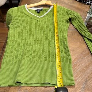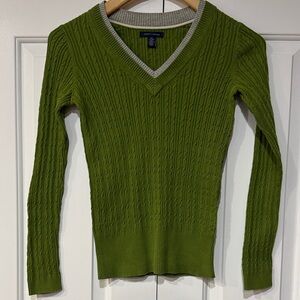 Stylish green V-neck with ribbed design. Perfect for layering.