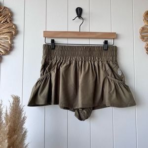 Stylish olive athletic shorts. Elastic waistband. Perfect for workouts.