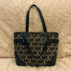 Stylish and versatile, this Michael Kors bag features a chic black and tan design. Perfect for any occasion, it combines elegance with functionality.