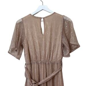 baltic born sparkle gown, champagne maxi dress, wedding guest dress, bridesmaid gown, shimmer formal dress, metallic evening gown, flutter sleeve dress, holiday party dress, baltic born abigail dress, elegant long dress