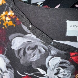 Elevate your wardrobe with this elegant black floral top from Alfred Dunner. Featuring a vibrant mix of red and white flowers, this top is perfect for any occasion. Great for work!