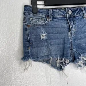 Aeropostale Womens Shorts Size 4 Denim Blue Distressed Casual Cutoff Jean