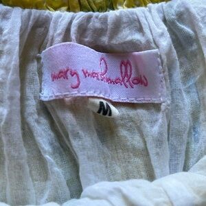 Mary Marshmallow Short Everyday Skirt in yellow with adorable blue florals and bow print. Ruffled and ruched, this discontinued print is perfect for the coming spring. 🌼