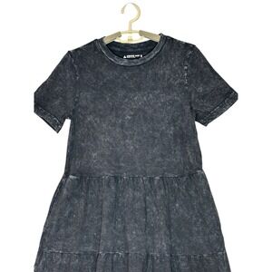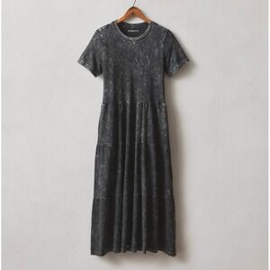 American Giant Womens Premium Slub Tiered Midi Dress Small Black Mineral Wash