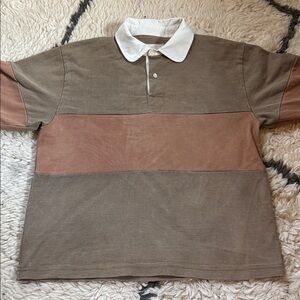 Super-heavy organic Japanese cotton jersey with Oxford collar with troca shell buttons. Inspired by quintessential vintage rugby, roomy fit… Hand vat-dyed in Chaga mushrooms, dyed, cut and sewn in California.
