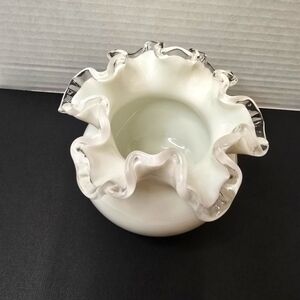 Vintage Fenton Silver Crest White Ruffled Glass Vase