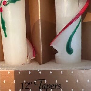 Vintage Beeswax Designs 12" Christmas Candles Tapers Spiral Holly