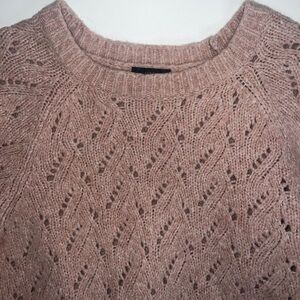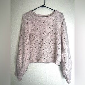Chic light pink sweater with delicate knit pattern. Ideal for layering or wearing alone. Soft and comfortable.