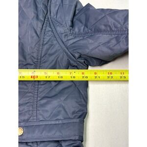 Keywords: LLBean, quilted jacket, barn jacket, navy blue, plaid lining, button front, women's outerwear, classic style, fall fashion, casual wear, outdoor apparel, country style