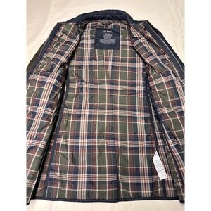 Wrap yourself in timeless comfort with this LLBean quilted barn jacket. Its classic diamond quilting offers a refined yet relaxed aesthetic, perfect for layering over your favorite tops. The rich navy blue exterior exudes understated elegance, while the vibrant plaid lining adds a touch of traditional charm, making the inside as delightful as the outside. Buttons are adorned with the LLBean logo adding a subtle brand touch. This versatile jacket is ideal for crisp autumn walks, casual weekend outings, or adding a polished layer to your everyday attire.