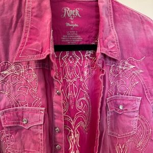 Pink embroidered button-up shirt with a western vibe #y2kfashion