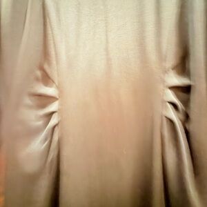 Tags: party, black tie, holidays, dress, maxi, midi, sweeping, gown, flute sleeves, v neck, silver buttons, back zipper, Audrey Hepburn, classic, elegant, timeless, luxe, high end, designer, chic, satin, sheen, quiet luxury, luxury, office wear, work, business, neutral, relaxed fit, midi
