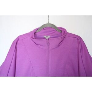 T by Talbots Air Stretch Knit Dolman Sleeve Jacket Back Pleat Mockneck Purple 2X