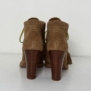 See by Chloe Brown Suede Lace Up Ankle Boots Block Heel Tassel Women Size 38
