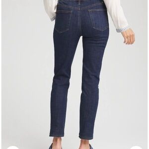 Made with a dark blue wash denim, showcasing unique character, these jeans are cut for a slim silhouette. Featuring a tummy slimming interior that lifts and shapes your figure, courtesy of Chico's proprietary So Slimming® technology.