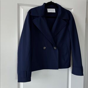 Harris Wharf London Size 42 Double-Breasted Cropped Trench Coat Jacket - Blue