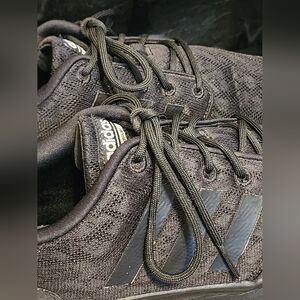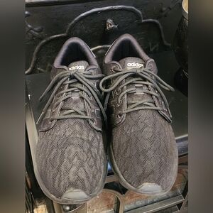 These sleek black sneakers from Adidas and great for everyday wear. Perfect for any casual outing, these shoes offer comfort and modern support. Lace up. Used but still have life.