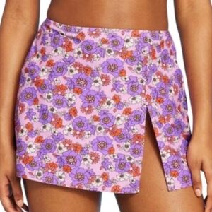 1๐๏ธ NWT XS Wild Fableโข Side-Slit Skirt/Cover-up Purple Floral Print