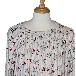 Secret Treasures Floral Fleece Long Nightgown Birds Floral Lace Size 3X