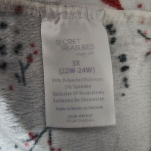 Secret Treasures Floral Fleece Long Nightgown Birds Floral Lace Size 3X Pit to pit 34" Sleeve 25" Length 46"