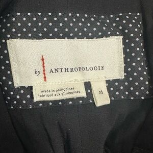 This sophisticated black jumpsuit by Anthropologie showcases a sleeveless halter neckline and wide-leg palazzo pants, creating an elegant silhouette. The cinched waist with a tie belt enhances the fit, while the keyhole back detail adds a stylish touch.