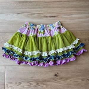 Matilda Jane Good Hart Ruffle Tutu Twirl Skirt Girls Size 4 Green Floral Tulle