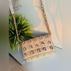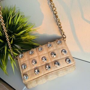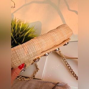 ⭐️Featuring a woven exterior with large sparkly jewelry details, this bag is perfect for any occasion, elevate a casual look or for a more glamorous occasion
