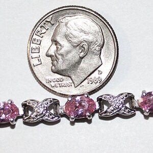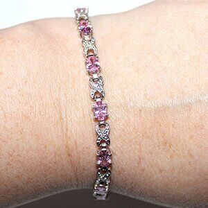 Sterling Silver Pink Cubic Zirconia Tennis Bracelet 10 Grams