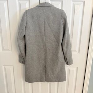 Elegant gray pea coat by Zara. Features double-breasted design. Perfect for stylish layering.
